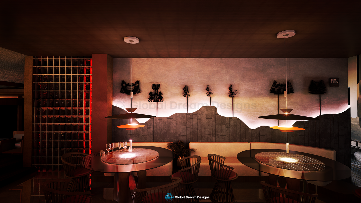 This restaurant interior merges the rich and diverse cultures of Asia into a modern and immersive dining experience. Drawing inspiration from various Asian traditions, the design weaves together distinctive elements from China, Japan, Vietnam, and Singapore, creating a visually stunning and culturally enriched environment.